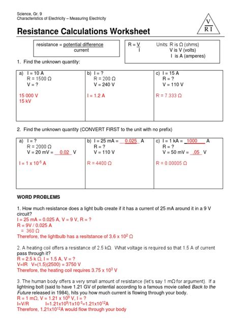 Download Resistance Calculations Worksheet Answers Doc