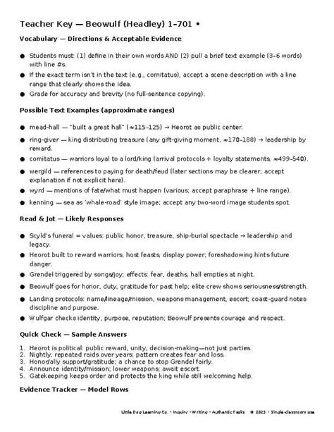 Read answer key beowulf prologue Doc